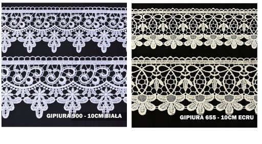 КРУЖЕВО ГИПУРА КРУЖЕВО 10-11 СМ БЕЛОЕ + КРЕМОВАЯ КОЖА