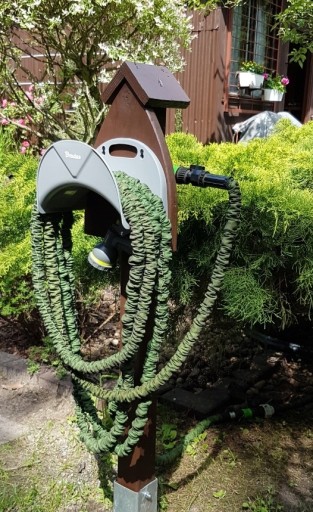 Wieszak na wąż ogrodniczy. Do zamocowania na ścianie.