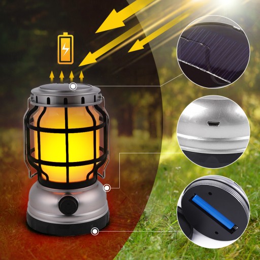 КЕМПИНГОВАЯ ЛАМПА СОЛНЕЧНАЯ СВЕТОДИОДНАЯ USB ПЛАМЯ/ФОНАРЬ