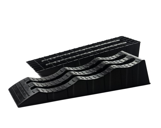 - ✅ Zwiększenie stabilności: Podkłady poziomujące pod koła są często stosowane w przypadku samochodów, przyczep kempingowych i innych pojazdów, które są pozostawiane na nierównym lub niestabilnym terenie. Działają one jako podpora dla kół, eliminując lub zmniejszając nachylenie i zapewniając stabilność pojazdu.