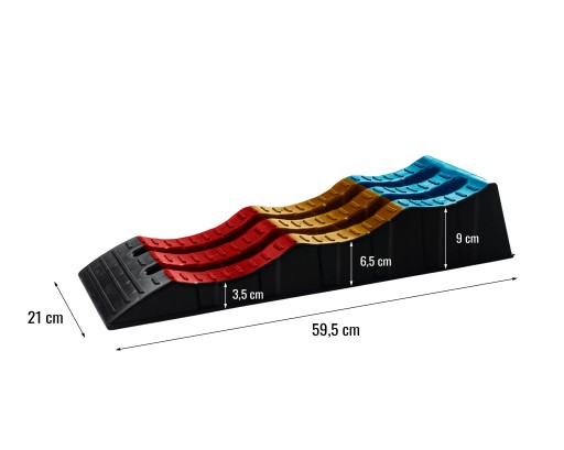 - Wysokość najazdów (3 stopnie): 3,5 / 6,5 / 9 cm