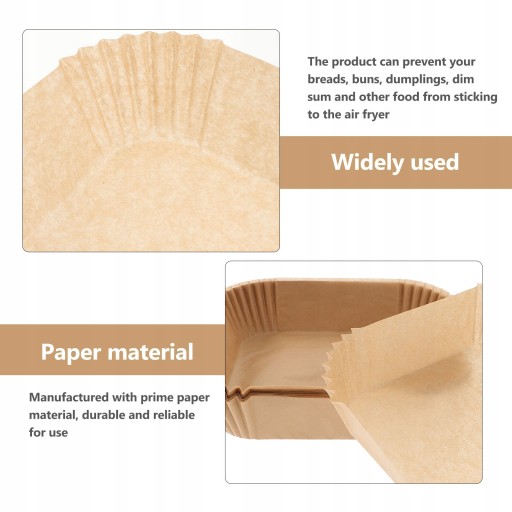 To papierowa wkładka Air Fryer, wykonana z najwyższej jakości materiałów, bezpieczna, trwała i praktyczna. Ma funkcję pochłaniania oleju, co może skutecznie zapobiegać kapaniu oleju na pulpit lub inne miejsca. Nadaje się do użytku w kuchni, restauracji lub piekarni, co jest bardzo praktyczne i wygodne.