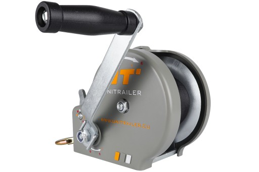 Wyciągarka korbowa UNITRAILER przeznaczona do wciągania na przyczepę łodzi, quadów i innych pojazdów. Dedykowana jest do przyczep podłodziowych. Wykonana została ze stali ocynkowanej, na boku sygnowana logo marki UNITRAILER, dodatkowo wyposażona w plastikową osłonę chroniącą wciągarkę przed czynnikami zewnętrznymi.