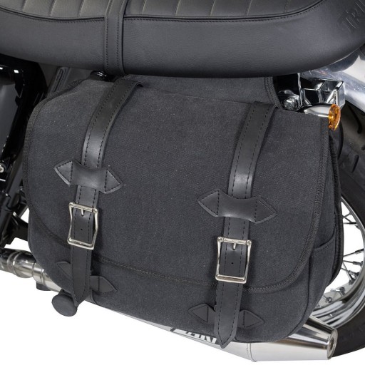 Ten prosty zestaw sakw z wytrzymałej tkaniny Canvas z paskami ze sztucznej skóry ma całkiem sporą pojemność. A mianowicie 2 x 14 litrów. Sporo miejsca do przechowywania "tego i owego" na następnej wyprawie.