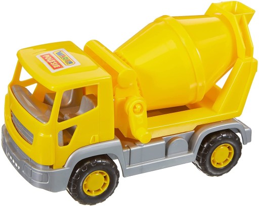 "Mali chłopcy lubią ciężkie maszyny na czterech kołach. Potrafią przyglądać się ich pracy godzinami. Chętnie też ściągają z półek sklepowych miniatury swoich ulubionych pojazdów budowlanych, rolniczych czy też komunalnych. Samochód - betoniarka to klasyczny pojazd wykonany z wysokiej jakości tworzywa. Dzięki temu produkt jest trwały, a zabawa nim bezpieczna. Betoniarka posiada szerokie koła o nierównej strukturze, co umożliwia jej jazdę nie tylko po gładkich i jednolitych powierzchniach. Gruszka umieszczona na pojeździe obraca się. Dzięki temu nasza pociecha będzie mogła mieszać umieszczane wewnątrz składniki. Szoferka wyposażona w dwa fotele pozwala na umieszczenie w niej ulubionych figurek.