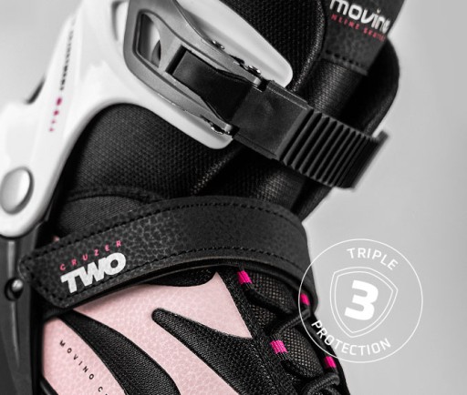 Rolki Movino Cruzer TWO posiadają szybki i niezawodny system regulacji rozmiaru za pomocą jednego przycisku. Czterostopniowy zakres regulacji rozmiaru pozwala dopasować but do stopy o długości między 24 a 26 cm (rozmiar 38-41).