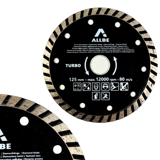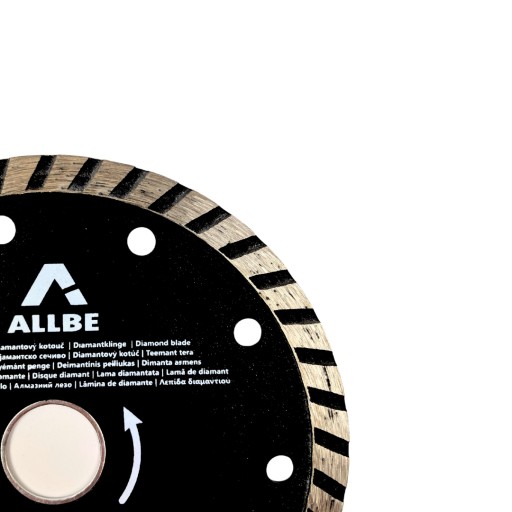 Tarcze diamentowe ALLBE przeznaczone są dla najbardziej wymagających użytkowników. W tarczy zastosowano segment diamentowy TURBO najwyższej jakości, który podczas cięcia w betonie zbrojonym i ciężkich materiałach nie będzie się klinował. Segment wysokości 7 mm wydłuży czas użytkowania.