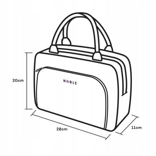 Kuferek na kosmetyki NOBLE® z ekskluzywnej kolekcji kosmetyczek damskich Gold. Pojemna kosmetyczka damska z rączkami, przypominająca kształtem torebkę. Kuferek pomieści bez trudu, duże kosmetyki oraz szczotki, szampony, lakiery i dodatkowe akcesoria kosmetyczne a nawet małą suszarkę do włosów. Kosmetyczka wyposażona jest w dużą komorę główną, zamykaną na zamek. Dodatkowa kieszeń od frontu z podwójnym suwakiem, posiada wewnętrzną kieszonkę z siatki na drobiazgi oraz elastyczny pas do mocowania pędzli i drobnych kosmetyków. Kuferek podróżny posiada składany i usztywniany spód dzięki któremu po rozłożeniu kosmetyczka zachowuje swój kształt. Zawsze gdy jej nie używasz można ją złożyć do małego płaskiego rozmiaru, przez co nie zajmuje dużo miejsca w szufladzie lub na półce w twojej łazience lub garderobie.