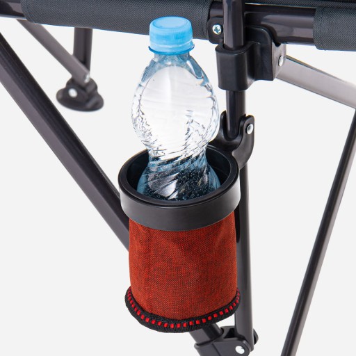 Składany, komfortowy fotel turystyczny z oparciem i uchwytem na butelkę.