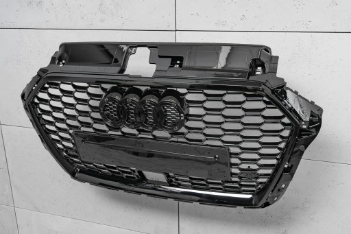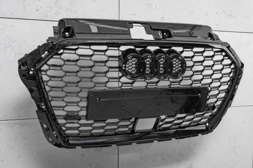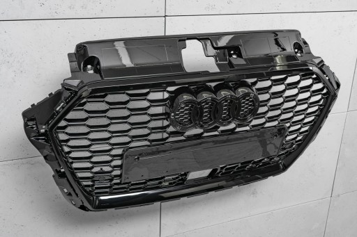 Dedykowany grill zaprojektowany został w stylu charakterystycznym dla samochodów z segmentu RS. Kratka grilla o charakterystycznym wzorze plastra miodu, nieodzownie przywodzi na myśl budzące respekt, pełne mocy samochody sportowe z najwyższej półki. Element zachwyca sportowym charakterem, a połysk czarnych lakierowanych elementów dodaje mu elegancji - dzięki czemu doskonale współgra z imponującym designem AUDI A3.