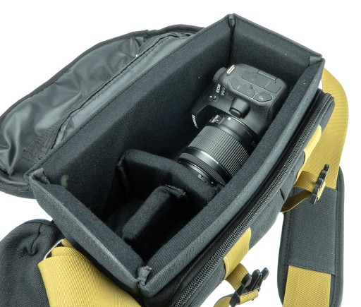 Dzięki wyjmowanej przegrodzie główną komorę można dowolnie regulować . Kieszenie doskonale nadają się do przenoszenia podstawowych akcesorii, takich jak: ładowarka, dodatkowe baterie, filtry, karty pamięci itp.