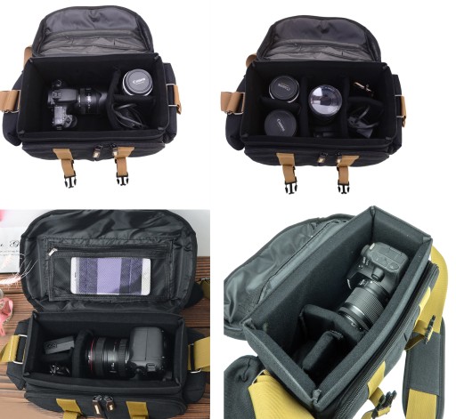 POJEMNA NARAMIENNA TORBA FOTOGRAFICZNA Z SYSTEMEM PODZIELNIKÓW KOMORY GŁÓWNEJ ORAZ USZTYWNIONEJ KONSTRUKCJI DLA LEPSZEGO DOPASOWANIA SPRZĘTU