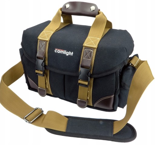 Torba pomieści średniej wielkości aparat wraz z akcesoriami, takimi jak: