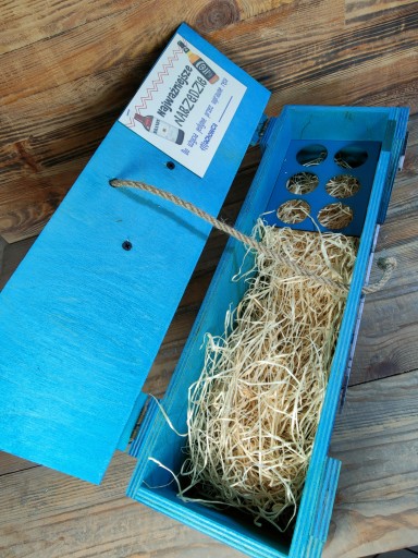 Solidna skrzynka w formie kuferka/walizki narzędziowej, która pomieści 1 sztukę butelki dowolnego trunku (wódka, whisky, wino, itp.)