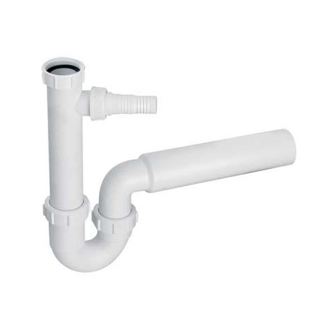 Syfon zlewozmywakowy rurowy 1 1/2″x50mm z podłączeniem do pralki lub zmywarki i odejściem poziomym, bez spustu. Przepustowość – 80l/min. przy słupie wody 120mm.