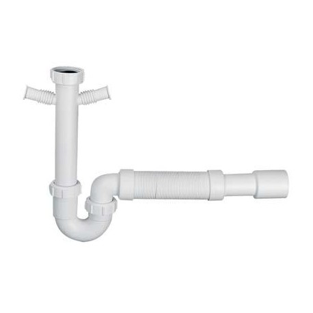 Syfon zlewozmywakowy rurowy 1 1/2″x50mm z podłączeniem do pralki lub zmywarki i odejściem uniwersalnym, harmonijkowym, bez spustu.