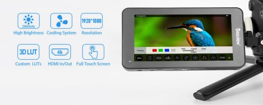 Monitor podglądowy Desview R6UHB został wyposażony w dotykowy ekran o przekątnej 5,5". Urządzenie wyróżnia się ponadprzeciętną jasnością, która wynosi aż 2800 nitów. Dzięki takim parametrom obraz będzie czytelny i wyraźny nawet wtedy, gdy pracujesz w pełnym słońcu. Urządzenie wyposażono również w czujnik optyczny, który może automatycznie dostosować jasność obrazu do warunków, w jakich przyjdzie Ci filmować.