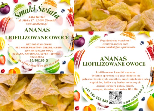 - 20g, 50g, 100g Ananas Liofilizowany zapakowany w czarny doypack