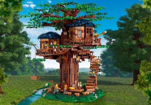 - Ta ciekawa zabawka do zbudowania składająca się z 3036 elementów zawiera podstawę z krajobrazem, drzewo z wymiennymi zestawami zielonych (letnich) oraz żółtych i brązowych (jesiennych) liści, a także Domek na drzewie LEGO(R) z 3 pomieszczeniami -- sypialnią, łazienką i pokojem dziecięcym.