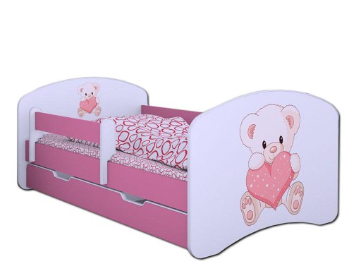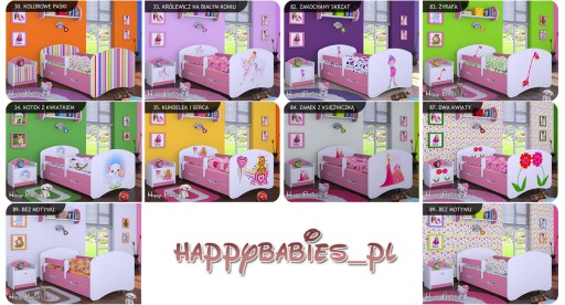 Na tej aukcji kupujesz łóżeczko HAPPY z szufladą w kolorze różowym: