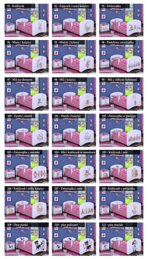 Każdy z mebli może być wykonany z motywami dostępnymi na łóżeczkach.
