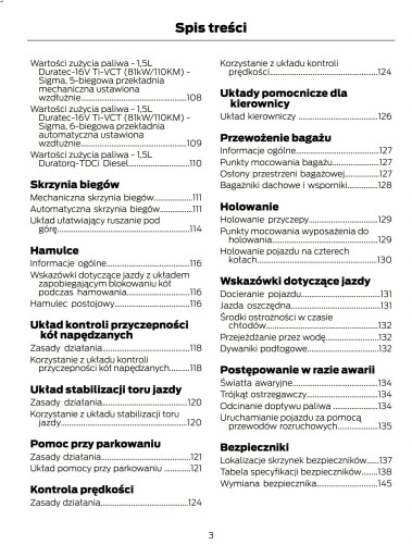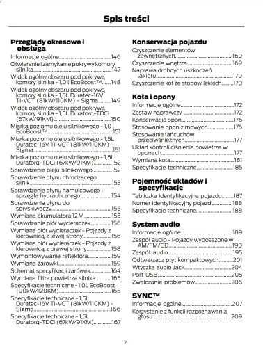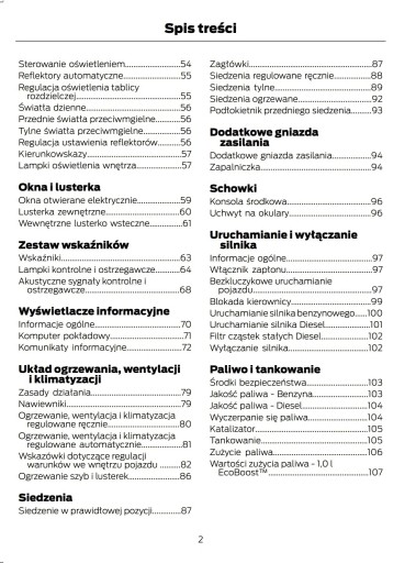Instrukcja obsługi Ford zawiera wszystkie wersje wyposażenia oraz przydatne informacje jak sprawnie i bezpiecznie użytkować pojazd np.-wskaźniki, lampki kontrolne, otwieranie i zamykanie-oświetlenie i widoczność, fotele, schowki, ogrzewanie, wentylacja, klimatyzacja-jazda, wskazówki eksploatacyjne, konserwacja pojazdu-poziomy płynów, sprawdzanie i uzupełnianie, czynności awaryjne, wymiana kół, bezpieczniki, wymiana żarówek-dane techniczne... oraz wiele wiele innych rzeczy, które dają poczucie bezpieczeństwa oraz komfortu podróżującym. Polskie prawo nakłada na sprzedawcę obowiązek dołączania instrukcji obsługi auta w języku polskim do . Instrukcja obsługi auta jest nowa i w języku polskim.