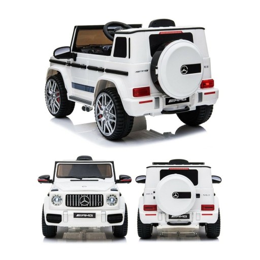 Samochód Mercedes-Benz G63 to pojazd na akumulator na LICENCJI MERCEDES'a. Pojazd posiada otwierane drzwi z obu stron. Napęd zapewniają mu CZTERY potężne silniki elektryczne, zasilane akumulatorem o pojemności 12V 7Ah. Na wyposażeniu pojazdu znajdują się uruchamiane przyciskami efekty dźwiękowe, wejście na odtwarzacz MP3, port USB,port TF, regulator głośności, światła LED, miękkie siedzisko z eko-skóry, miękkie koła piankowe EVA. Dostępne są 3 prędkości poruszania. Bezpieczną naukę jazdy zapewnia dołączony pilot zdalnego sterowania 2.4G, dający rodzicowi pełną kontrolę nad pojazdem.
