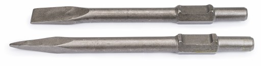 - Uchwyt typu HEX (sześciokątny) zapewnia najwyższy stopień wytrzymałości akcesoriów kujących. Pewne mocowanie gwarantuje zastosowana w uchwycie blokada ze sworzniem, jest to istotne z uwagi na dużą siłę udaru młota.