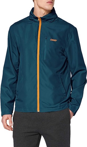 Kontrastowy zamek błyskawiczny i nadruk z logo tej funkcjonalnej kurtki nadają jej modny wygląd. Kurtka rowerowa posiada dwie kieszenie z przodu i małą kieszonkę zapinaną na zamek. Dzięki zwijanemu kapturowi kurtka niezawodnie chroni przed mżawką. Od wewnątrz kurtka treningowa jest podszyta ultra lekką siatką, dzięki czemu idealnie nadaje się na przejściówki.