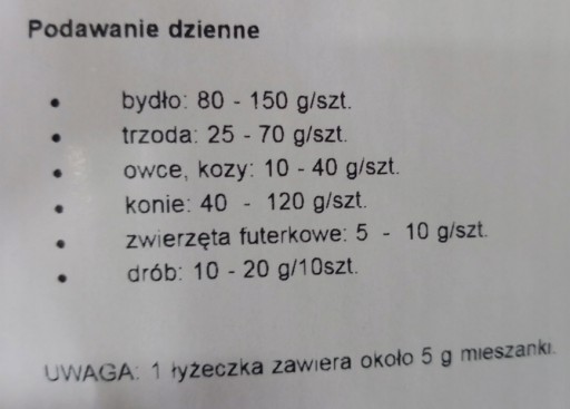 UWAGA: 1 łyżeczka zawiera około 5 g mieszanki.