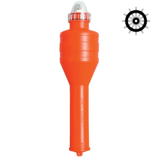 Samowłączająca pława świetlna, wykonana z PCV w kolorze pomarańczowym. Połączenia elektryczne wewnątrz pławy wykonane są ze stali nierdzewnej.