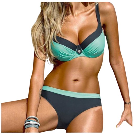 ✨ STRÓJ KĄPIELOWY DWUCZĘŚCIOWY NEONOWY ZIELONY BIKINI PUSH UP XXL