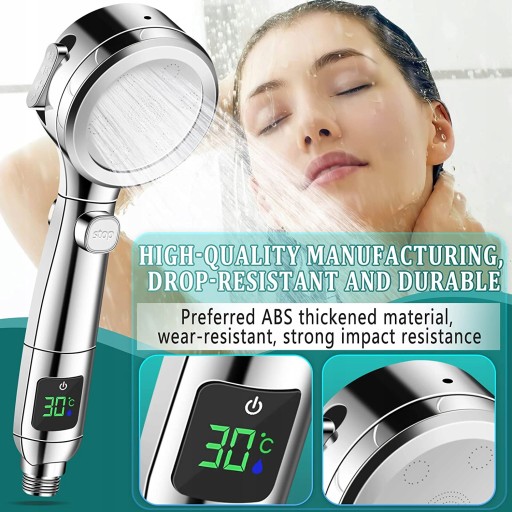 4 tryby strumienia - 4 różne wzory strumienia łazienkowej głowicy prysznicowej, w tym prysznic ze strumieniem deszczowym, masaż, jet spa i mocne płukanie. Każdy model może zapewnić inne naturalne wrażenia spa, dzięki czemu Ty i Twoja rodzina możecie cieszyć się relaksującym i komfortowym prysznicem w domu, a także może być używany do codziennego sprzątania łazienki, wygodny do czyszczenia trudnych do czyszczenia narożników łazienki i Wasze łazienkowe ukochane zwierzaki. Wyświetlacz temperatury głowicy prysznicowej - Dotknij przełącznika, nasza wysokociśnieniowa głowica prysznicowa może bezpośrednio odczytać temperaturę i pomóc wybrać najlepszą temperaturę wody, nie wymaga baterii, krople wody poniżej 38 stopni będą wyświetlane na niebiesko, a powyżej 38 stopni na czerwono. Nigdy więcej martwienia się, że woda dla twojej rodziny jest zbyt gorąca lub zbyt zimna, idealna do kąpieli dzieci, osób starszych i mycia zwierząt domowych