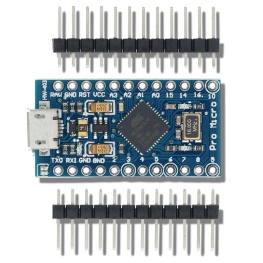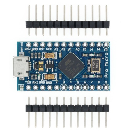 Moduł Pro Micro 5V 16MHz zgodny z Arduino posiada mikrokontroler ATmega32U4, pracujący z częstotliwością 16MHz z fabrycznie wgranym bootloaderem. Na pokładzie pro micro znajduje się 20 pinów I/O oraz interfejsy SPI, UART, TWI/I2C. Nie posiada konektorów na pokładzie, możemy więc wlutować tylko te, które są nam potrzebne.