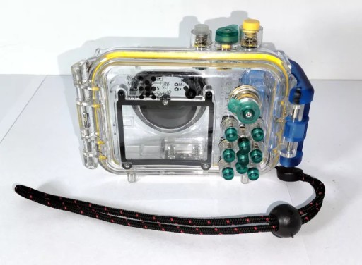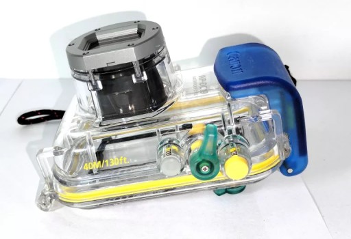 Obudowa podwodna przeznaczona do aparatu Canon IXUS 960 IS. Pozwala na zanurzenie do głębokości 40 m.