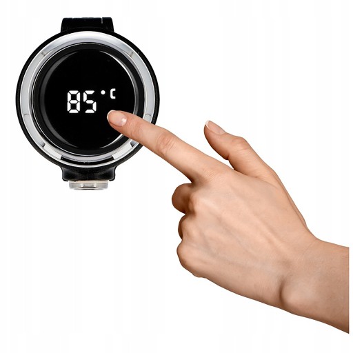 Na wieczku kubka znajduje się wyświetlacz led, który po dotknięciu palcem pokazuje aktualną temperaturę napoju.