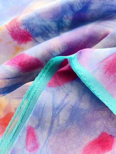 Szal wykonany z ekologicznych tkanin. Bez sztucznych dodatków. Ręcznie wykańczany i sprawdzany. Znakomita jakość dzięki wysokiej klasy materiałom oraz kontroli jakości na każdym etapie wytwarzania. Tkanina 100% jedwab naturalny najwyższej jakości.