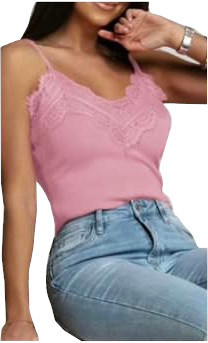 Śliczny stylowy top z koronką na ramiączkach. Stylowa i seksowna kreacja dla każdej kobiety. Bawełniane bardzo wygodne elastyczne, wykończone falbanką