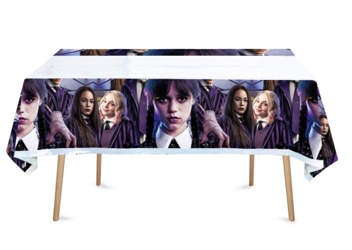 Na tej aukcji sprzedawany jest tylko i wyłącznie obrus. Posiadamy także inne produkty z serii Wednesday, przedstawione na zdjęciach, np: balony foliowe, balony lateksowe, kubki, talerzyki, serwetki, toppery, girlandy, itp.