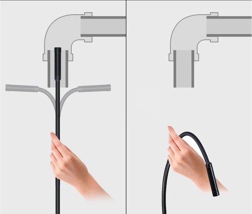 Sztywno-giętki przewód pozwalają na wyginanie endoskopu pod kątem wzroku. Dzięki temu kamera z wglądu może zostać wprowadzona nawet do wąskich rur czy wyników oraz na wysoką, trudno dostępne miejsca. Kamera sama będzie się dopasowywać do działania pod wpływem nacisku ze strony ścianek i tym samym.