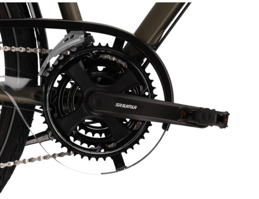 Na uwagę zasługują też opony w które wyposażony jest Trans 5.0: Schwalbe Silento K-Guard (28"x1.6", reflex) - Schwalbe jest obecnie jedną z najbardziej solidnych firm jeżeli chodzi o produkcję ogumienia rowerowego. Model Silento to połączenie dobrego przetaczania się po twardej nawierzchni oraz przyczepności na drogach bardziej piaszczystych czy szutrowych. Dodatkowo opona posiada włókno kevlarowe (wykorzystywane w produkcji kamizelek kuloodpornych) zapobiegające jej rozwarstwianiu się i przebijaniu.Dla zwiększonego bezpieczeństwa po zmroku opona Silento po każdej ze stron ma pasek odblaskowy nie rzucający się w oczy za dnia.