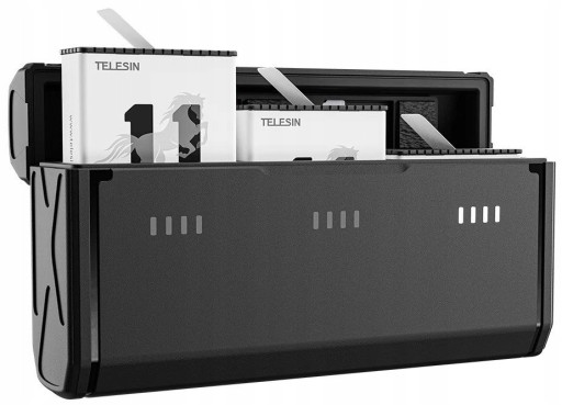 Szybka ładowarka marki Telesin pozwala na ładowanie aż do trzech baterii jednocześnie. Wbudowany chip dobiera odpowiednie parametry ładowania i wydłuża żywotność akumulatorów. Posiada też diody LED wskazujące stan naładowania.