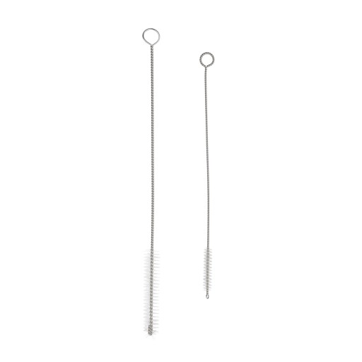 Praktyczny zestaw szczotek ułatwi codzienne mycie butelek i smoczków. Mała szczoteczka z gąbki przeznaczona jest do delikatnego czyszczenia smoczków z zabrudzeń po mleku lub kaszce. Dzięki wymiennej rączce, w zależności od potrzeb, możesz użyć końcówki z włosiem lub z samą gąbką. Dwie większe szczotki przeznaczone są do mycia butelek. Dodatkowe mini szczoteczki służą do dokładnego mycia rurek kubeczków i bidonów. Włosie szczotek wykonane jest z tworzywa, które nie rysuje powierzchni. Gąbka umożliwia dokładniejsze mycie dna butelek.