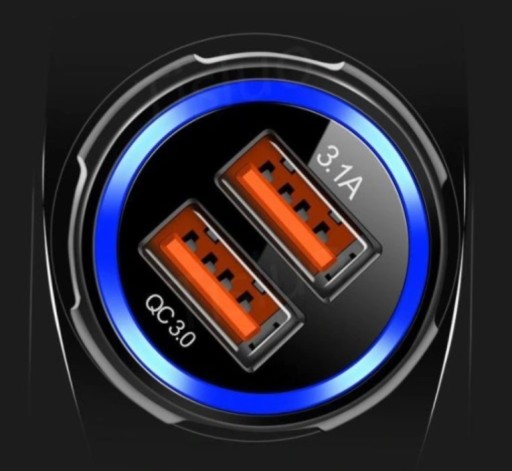 БЫСТРОЕ АВТОМОБИЛЬНОЕ ЗАРЯДНОЕ УСТРОЙСТВО 3,1 А ДЛЯ АВТОМОБИЛЯ USB LED QC 3.0, 2 порта USB