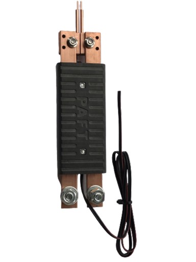 Rączka do zgrzewarki ogniw z wyzwalaczem. Wersja z elektrodami o średnicy 3 mm.