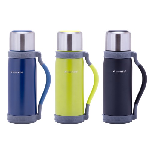 Termos próżniowy ze stali nierdzewnej z uchwytem i paskiem 1200 ml KAMILLE KM-2015