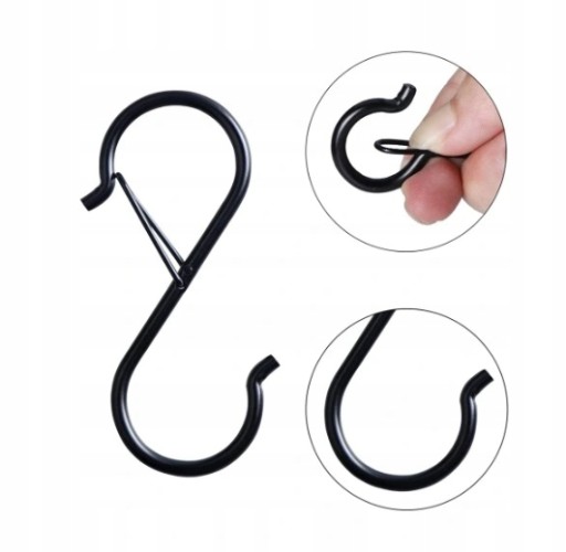 -Paczka zawiera: 10 sztuk haków w kształcie litery S jest wytrzymała i trwała, z nierdzewną powierzchnią i klamrami bezpieczeństwa, nadaje się do zastosowania wewnątrz i na zewnątrz.