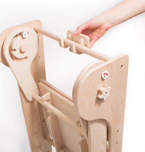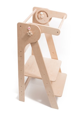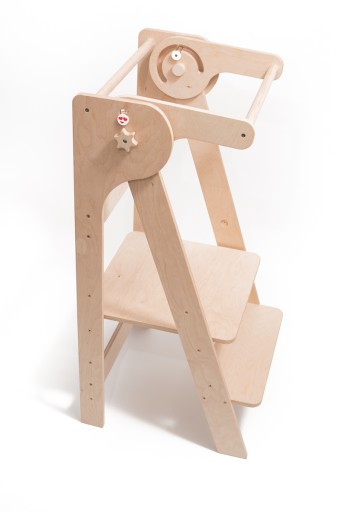 - ta wersja zyskała również możliwość zamocowania podestu na trzech wysokościach, aby pomocnik mógł rosnąć razem z dzieckiem!