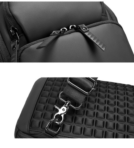Wyjątkowy plecak na jedno ramię posiada dwie pojemne komory + trzy mniejsze. Ponadto wykonany jest z wodoodpornego materiału, więc świetnie sprawdzi się zarówno w trakcie pieszych wędrówek po mieście, jak i poza nim.