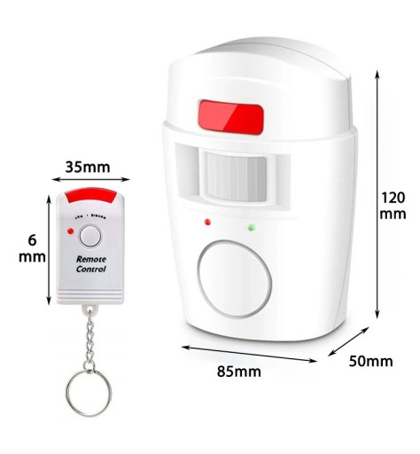 ✅ CZUJNIK RUCHU Z GŁOŚNĄ SYRENĄ ALARMOWĄ STEROWANY ZA POMOCĄ PILOTÓW - Bezprzewodowy minialarm z czujnikiem ruchu i wbudowaną syreną wykorzystuje promieniowanie podczerwone i jest sterowany za pomocą pilota (ON/OFF) - 2 piloty w zestawie.